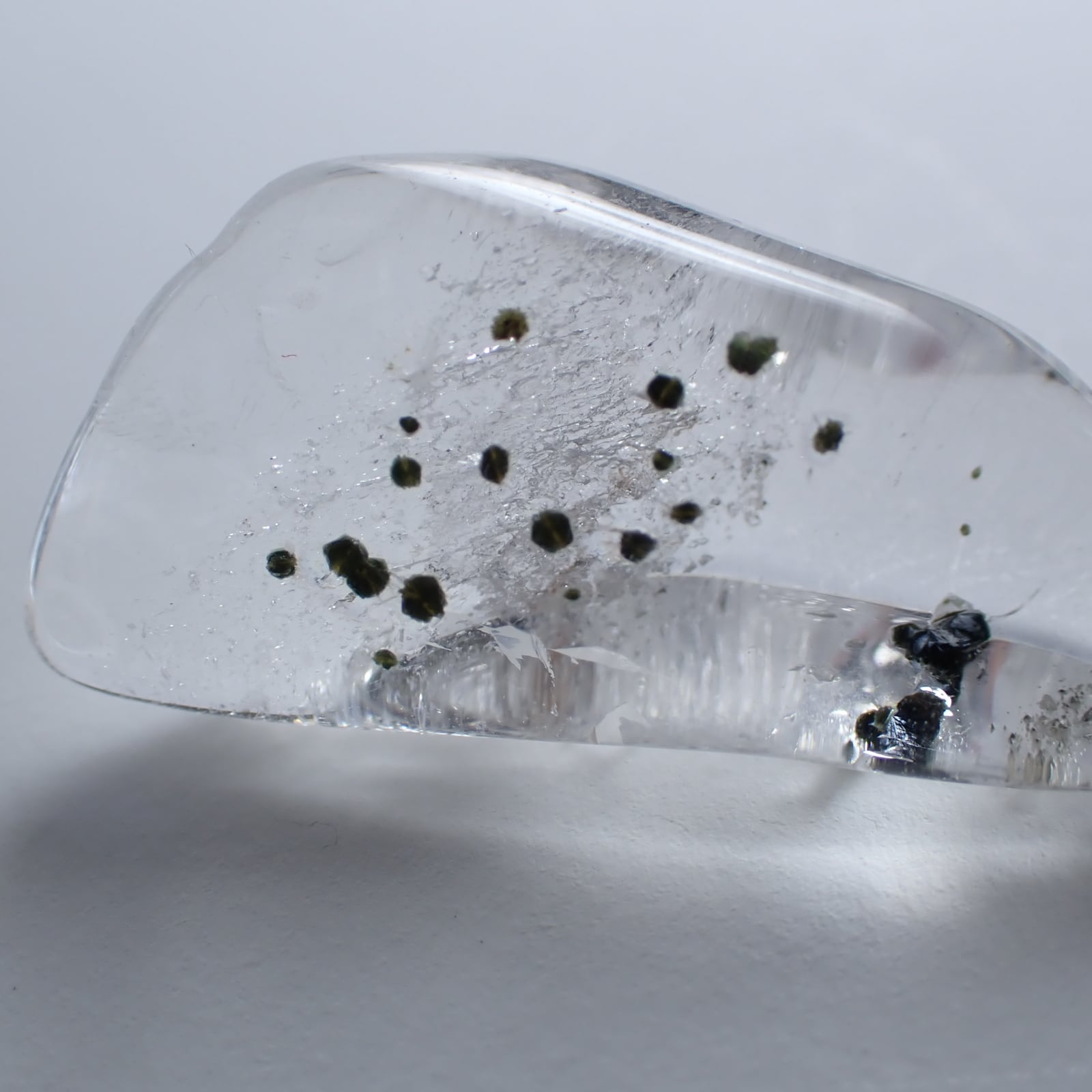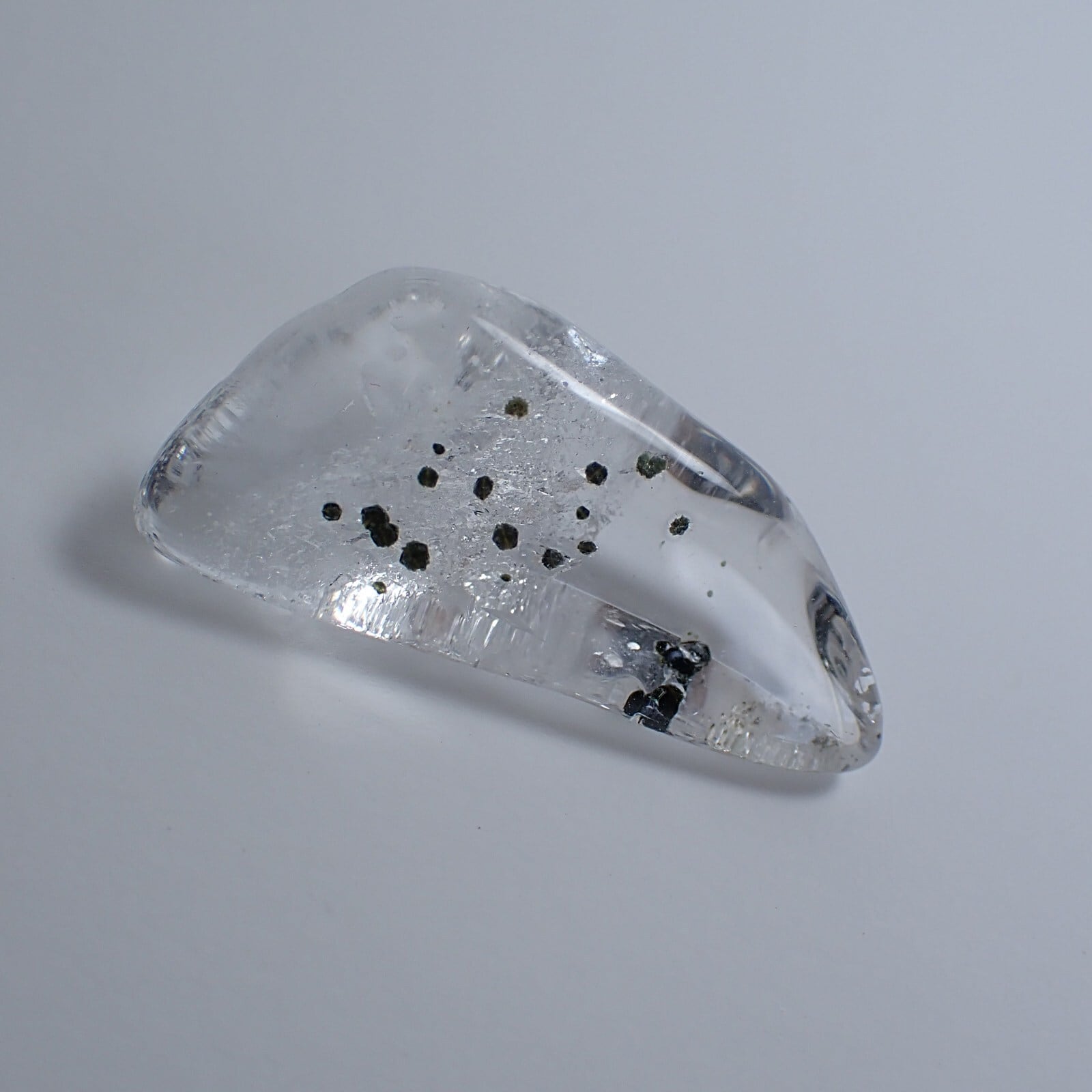 こちらの水晶はタンブル(磨き)加工を施していますが、原石由来の小さな擦り残しが見られる場合があります。