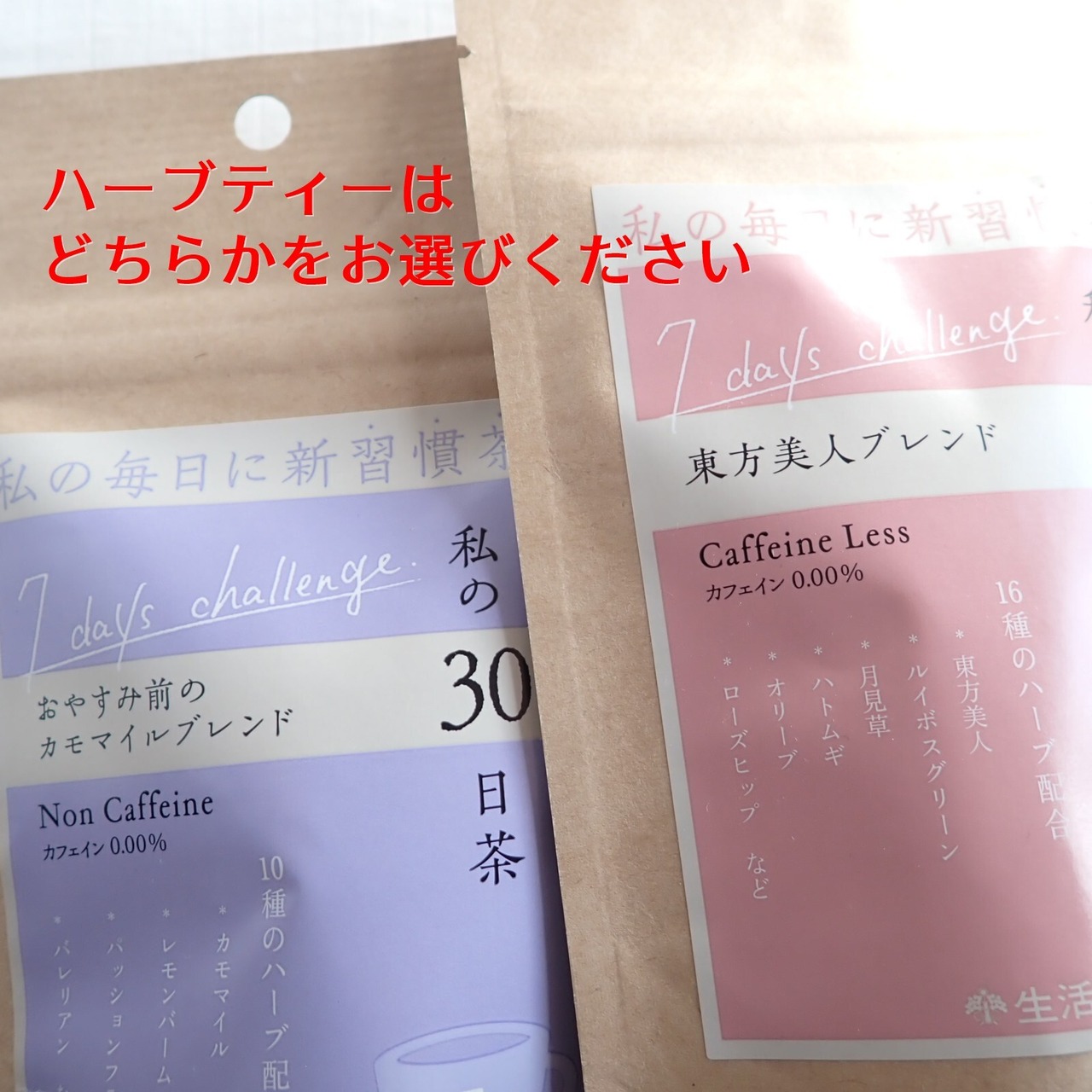 ローズヒップ、グアバ葉、ハトムギ、エルダーフラワー、ヒース、ダンデリオンルート、マリーゴールド、東方美人、ルイボスグリーン、オリーブ、レッドグレープリーフ、ネトル、バードックルート、ジュニパーベリー、ローズマリー、月見草