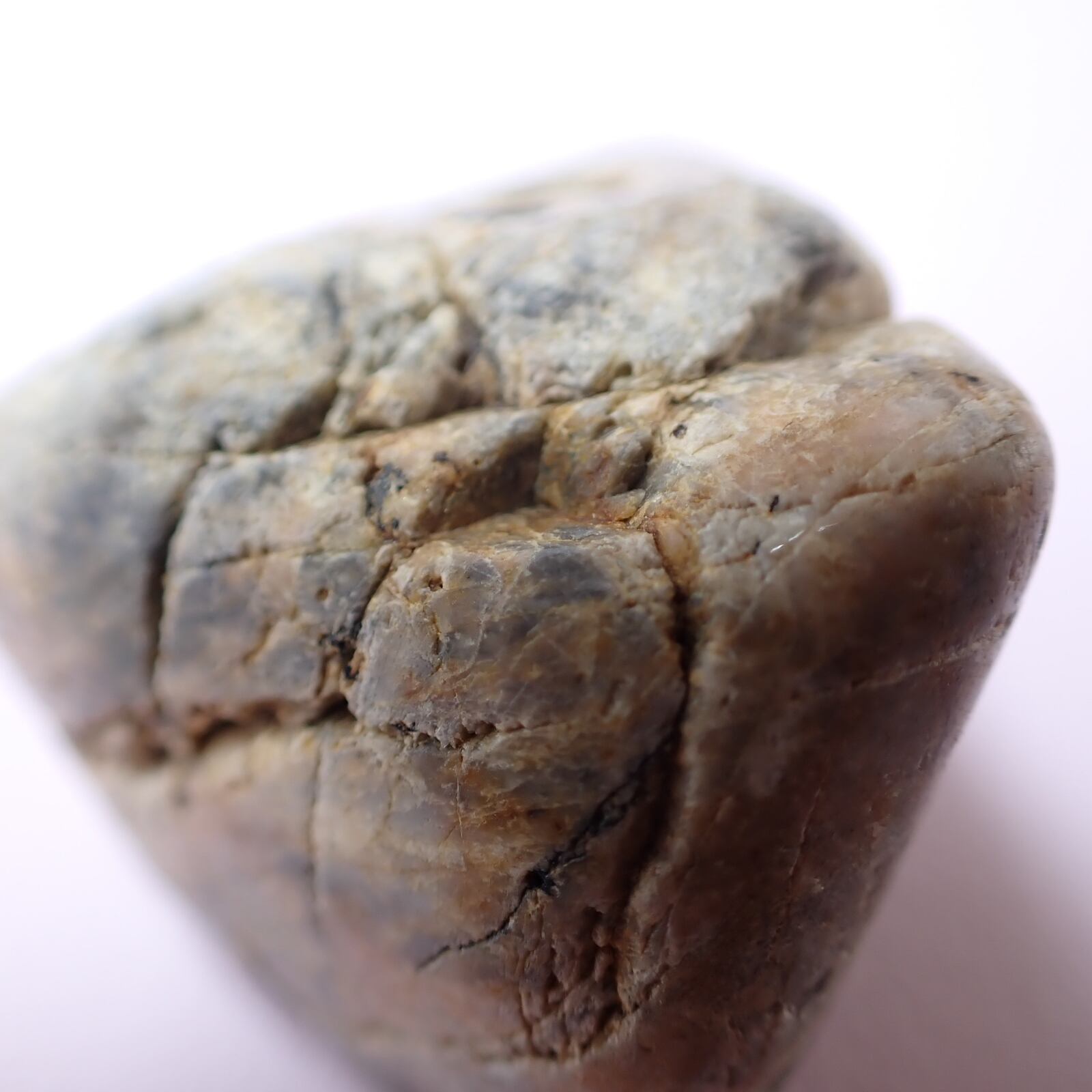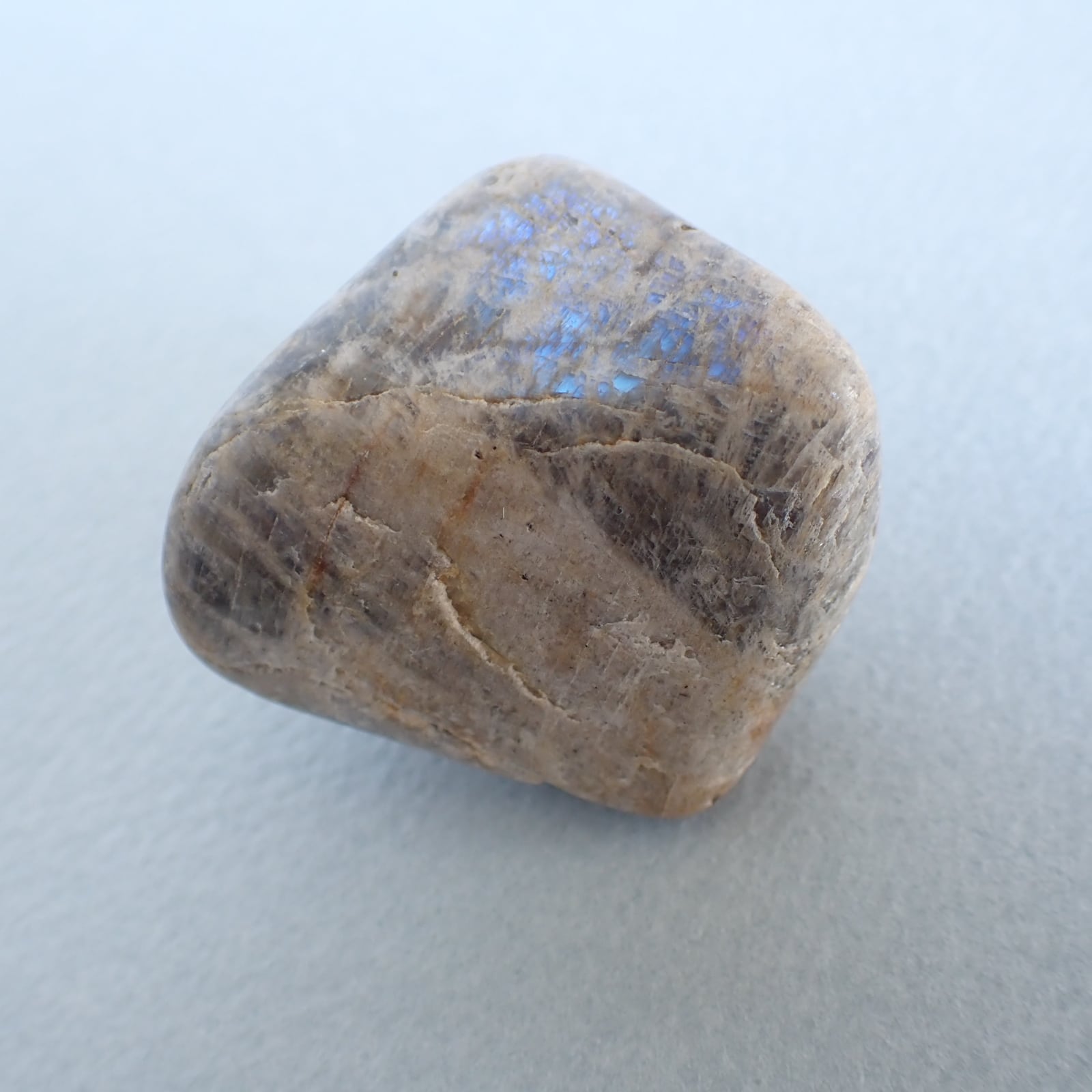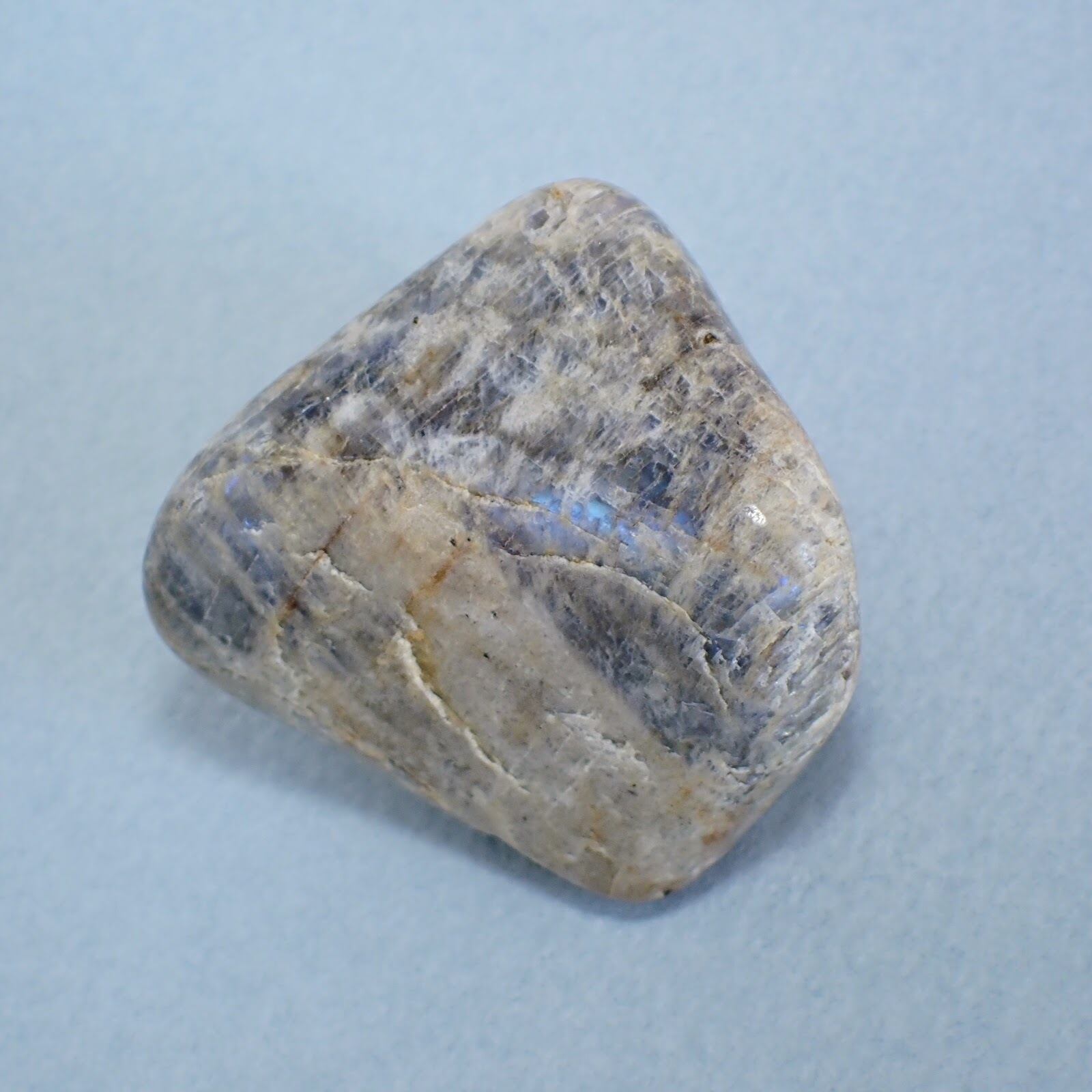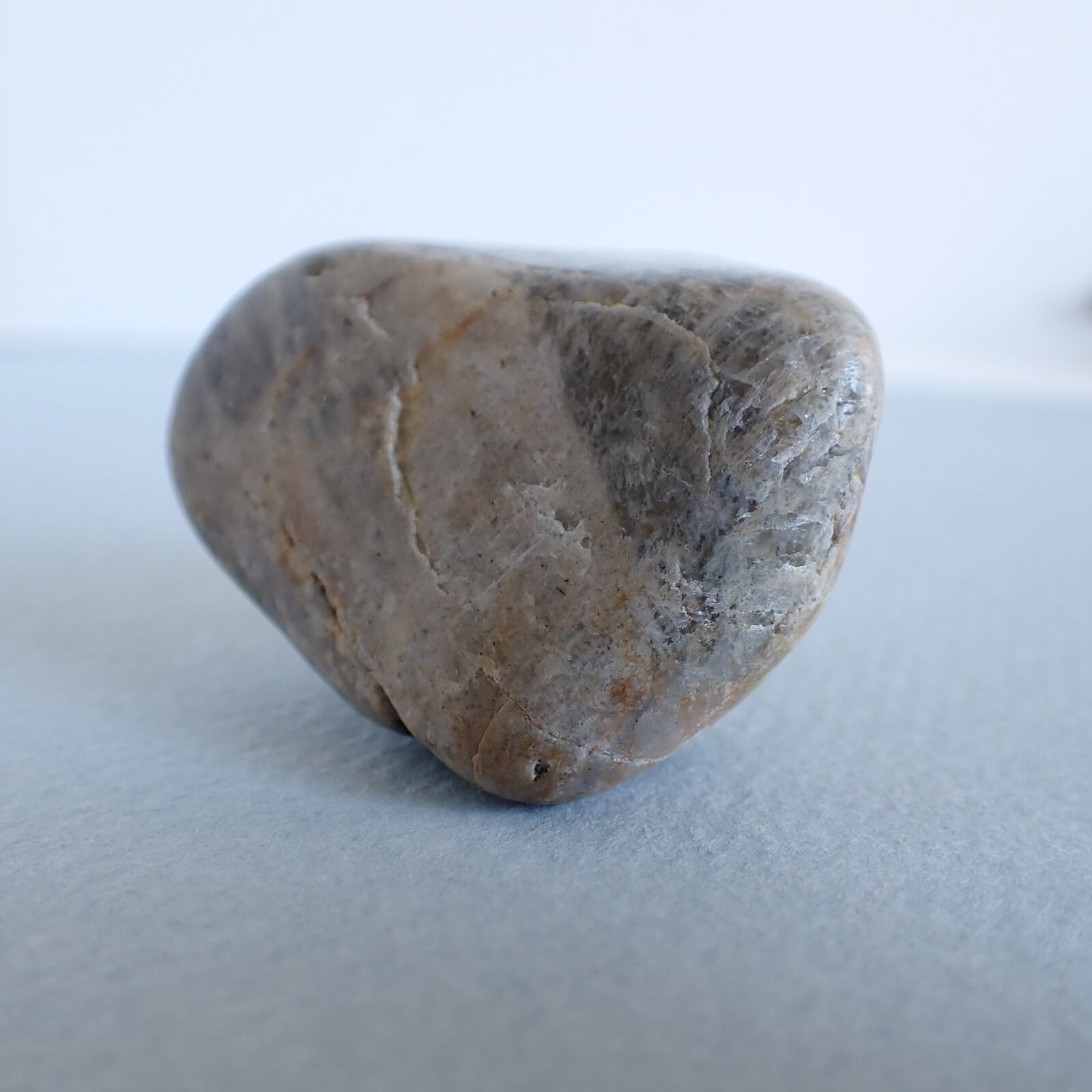 ウィスコンシンムーンストーンは、原石の風合いを活かすよう磨かれており、欠けやヒビ、鉄分による茶色い部分などが多く見られます。