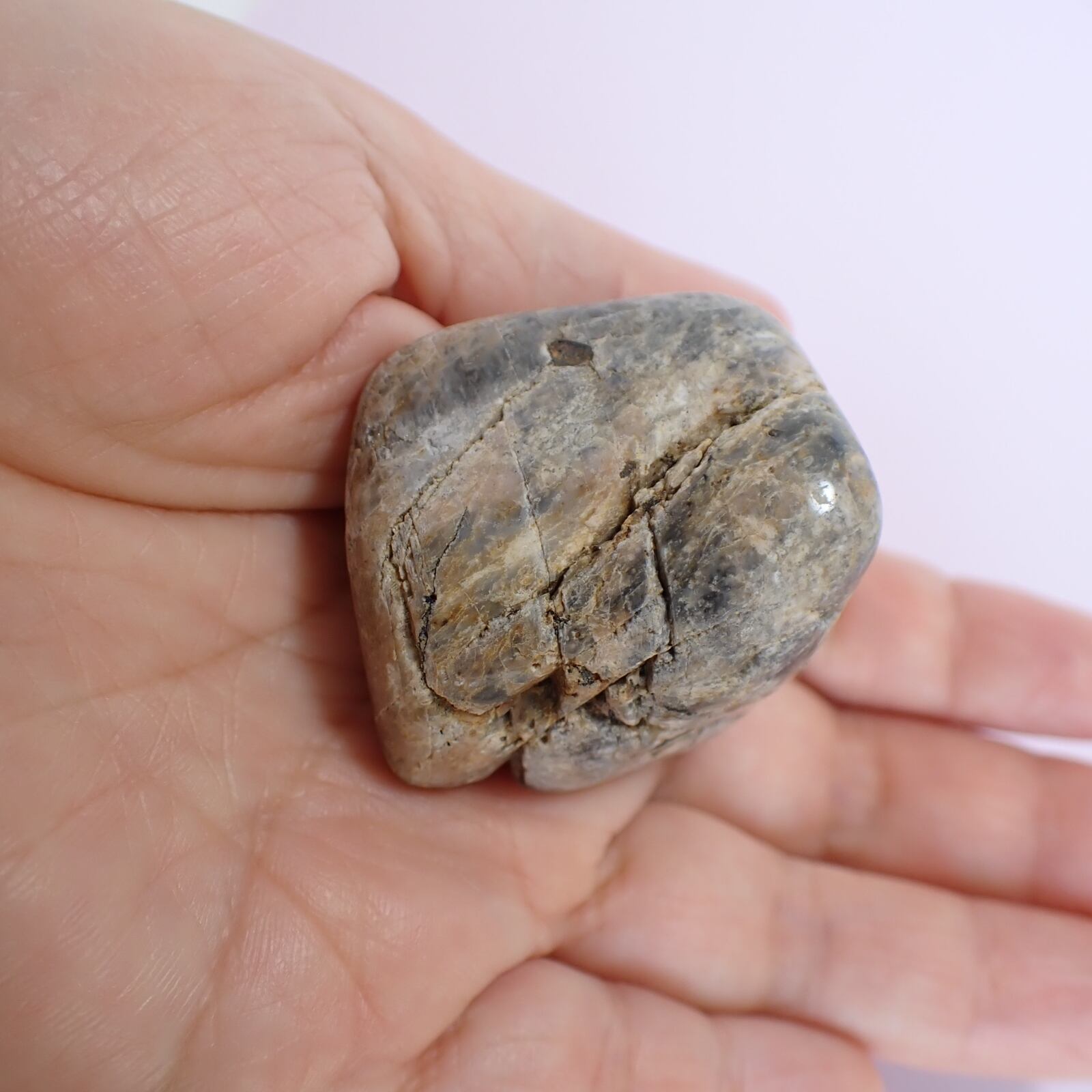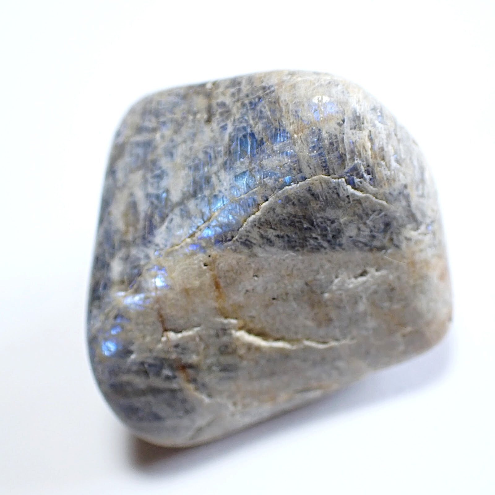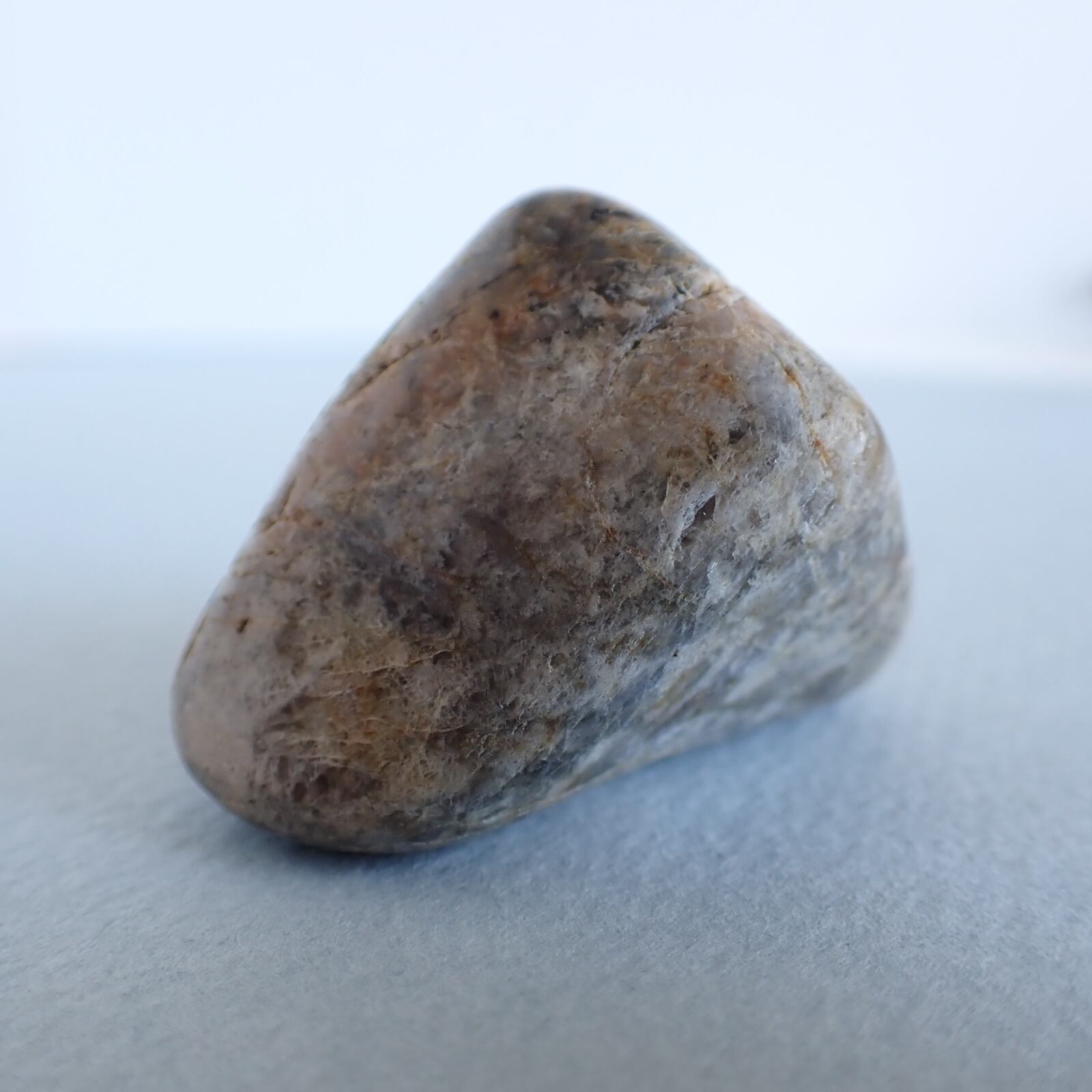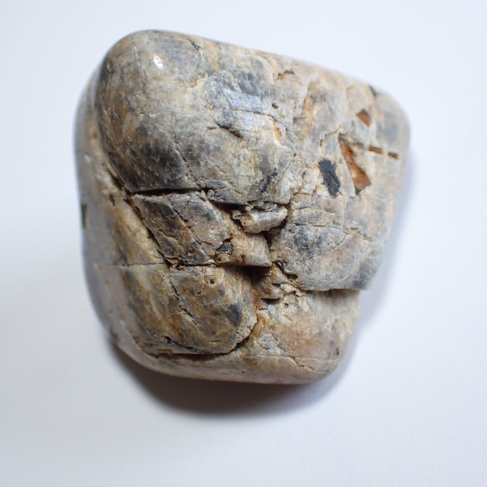 ウィスコンシンムーンストーンは、原石の風合いを活かすよう磨かれており、欠けやヒビ、鉄分による茶色い部分などが多く見られます。