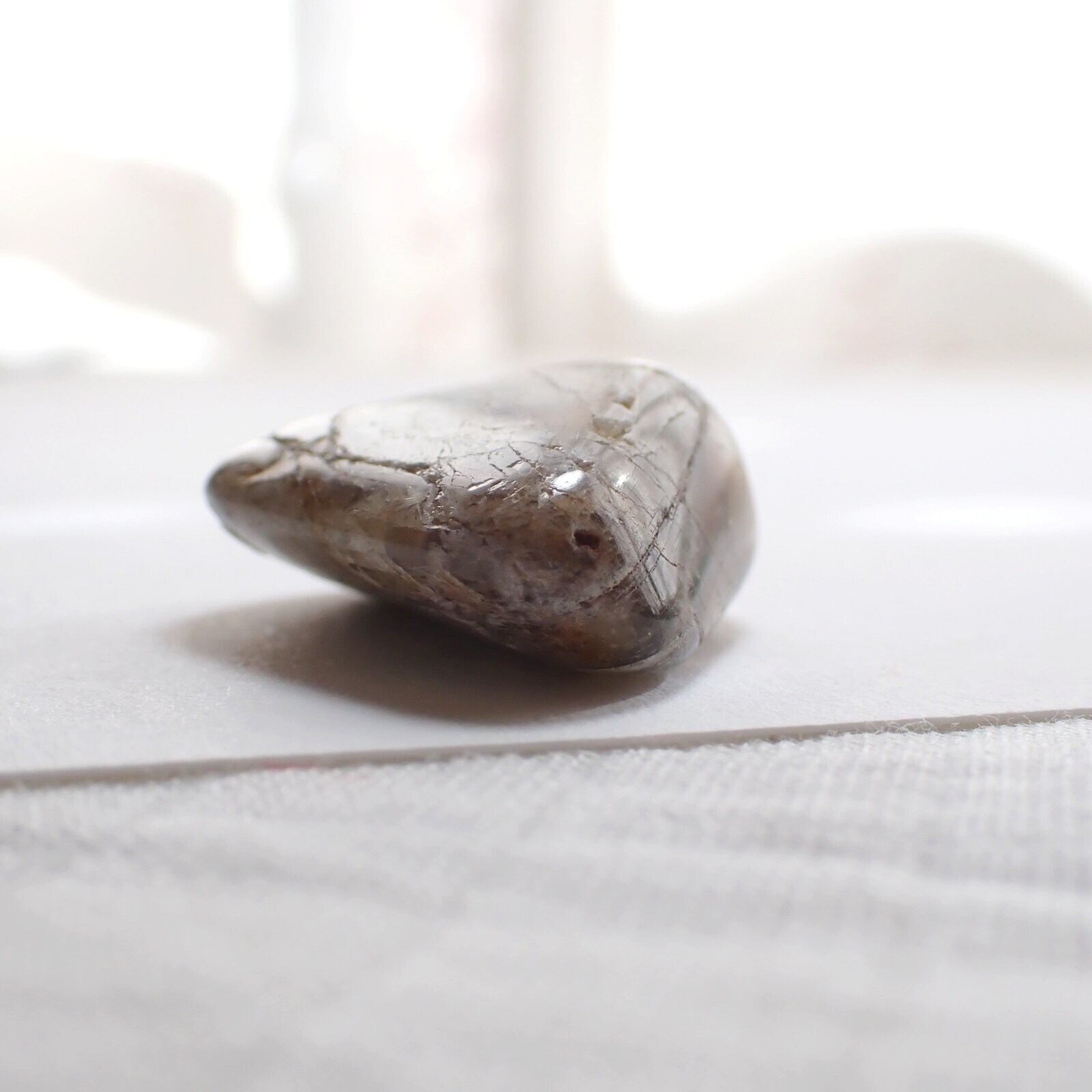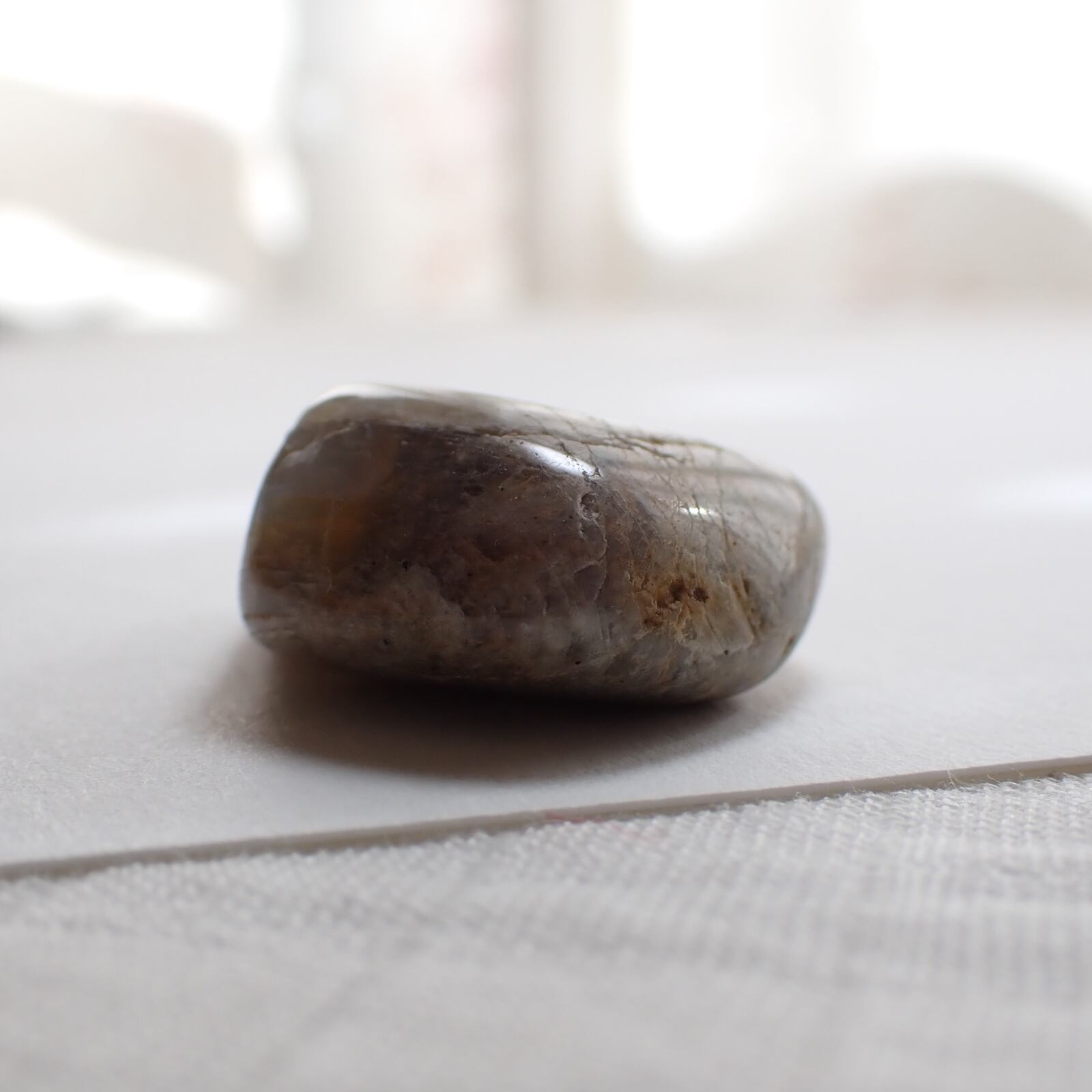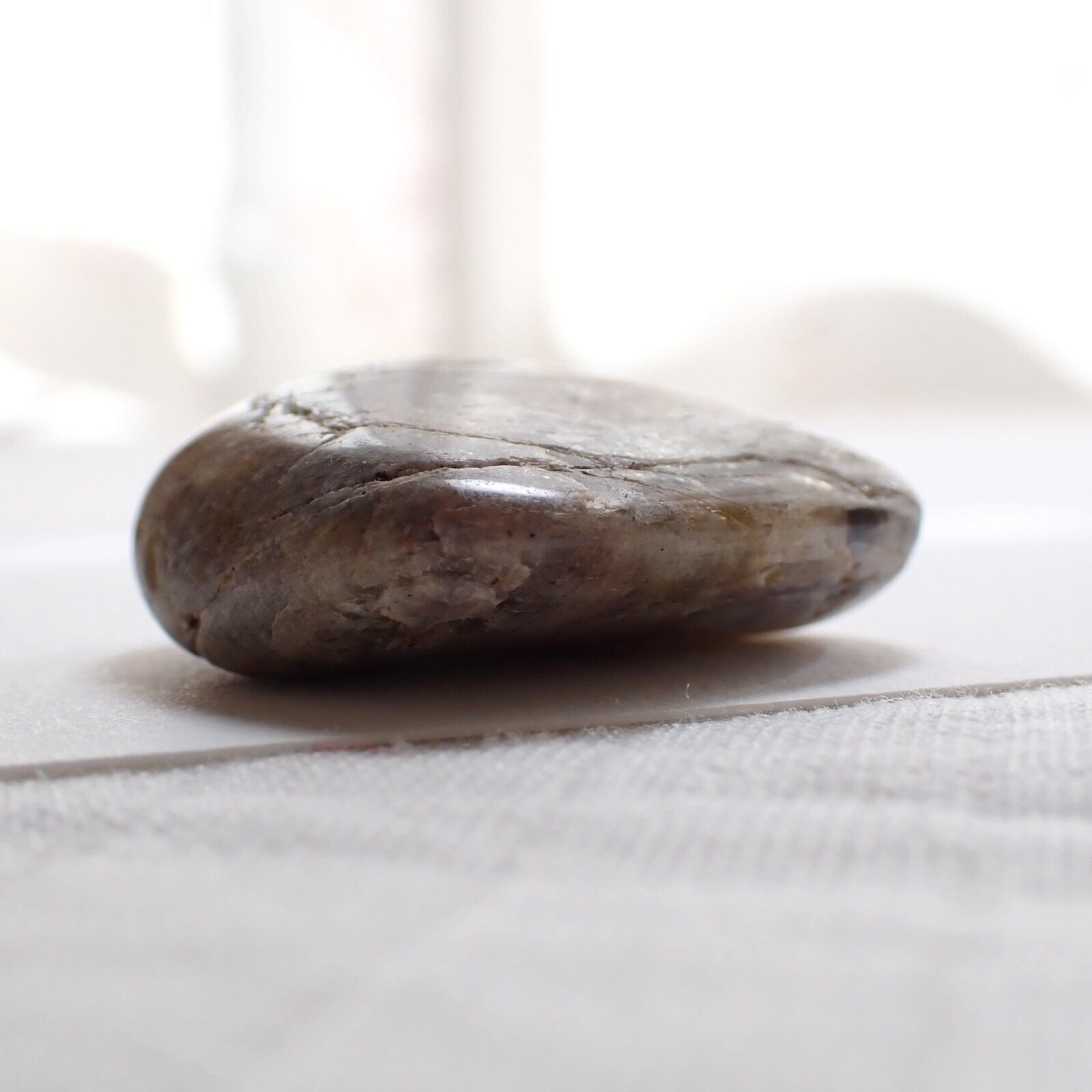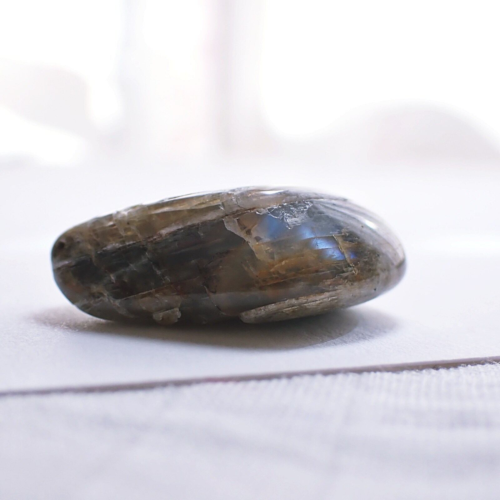 ウィスコンシンムーンストーンは、原石の風合いを活かすよう磨かれており、欠けやヒビ、鉄分による茶色い部分などが多く見られます。
